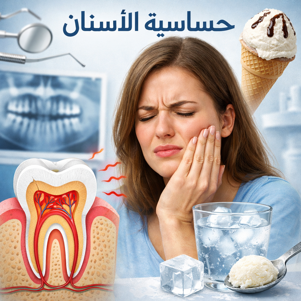 حساسية الأسنان هو ذلك الشعور المفاجئ بوميض من الألم أو الإحساس بوخز خفيف عند تناول السكريات أو الحوامض، أو الأشربة الباردة والساخنة، ويمتاز ألم الأسنان الحساسة بعدم التواصل ويزول بزوال السبب، أما الألم المستمر في الأسنان والذي لا يرتبط بسبب معين فهو مؤشر لمشكلة أخرى في السن، ولفهم سبب حدوث حساسية الأسنان يجب أن نشرح تركيب السن: